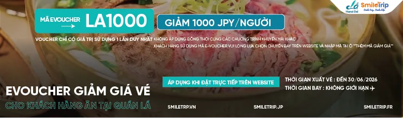 LA1000 là mã e-voucher giảm giá vé máy bay quốc tế dành riêng cho khách hàng đã trải nghiệm dịch vụ tại Lá Hanoi Deli.