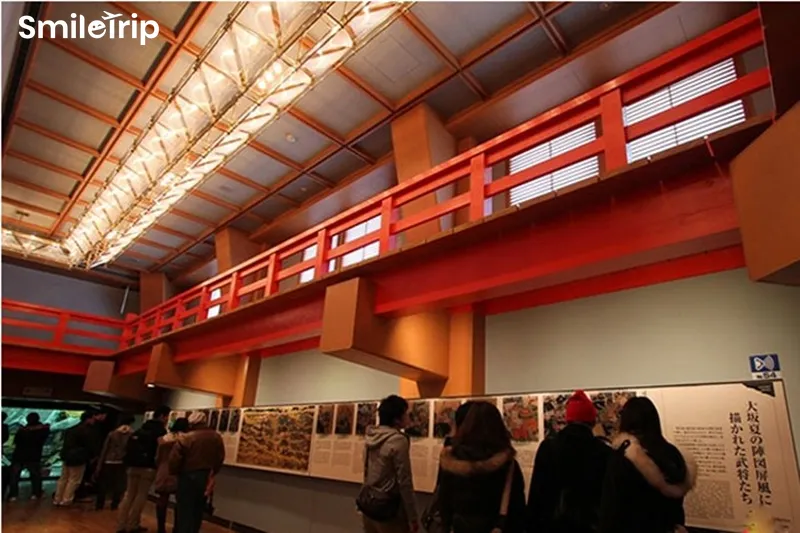 Tại tầng 2, du khách có thể chiêm ngưỡng các bản sao vật trang trí bằng vàng như Shachihoko hay tượng hổ vàng, góp phần tái hiện rõ nét không khí lịch sử của lâu đài Osaka.
