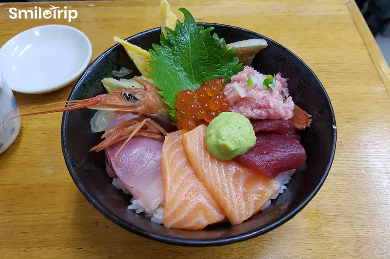 - Hải sản tươi sống như cua, nhím biển, sò điệp – thường được dùng làm sashimi hoặc sushi