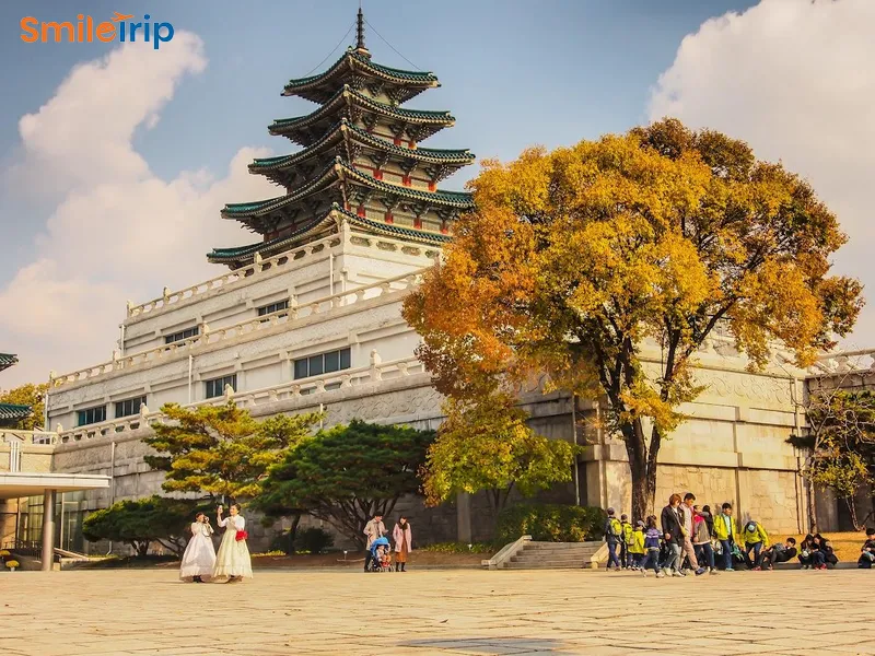Biểu tượng lịch sử tiêu biểu của Seoul, cung điện này gây ấn tượng với kiến trúc truyền thống và nghi lễ đổi gác đặc sắc. Thời điểm đẹp nhất để tham quan là buổi sáng, khi không quá đông và ánh sáng thuận lợi để chụp ảnh.