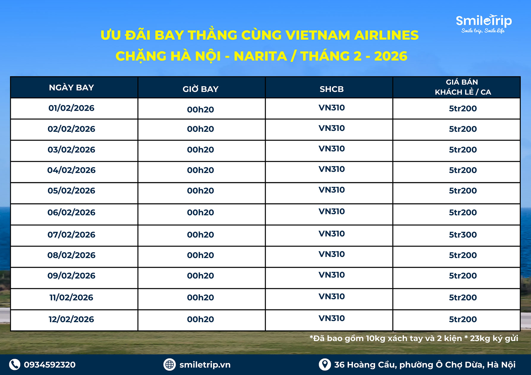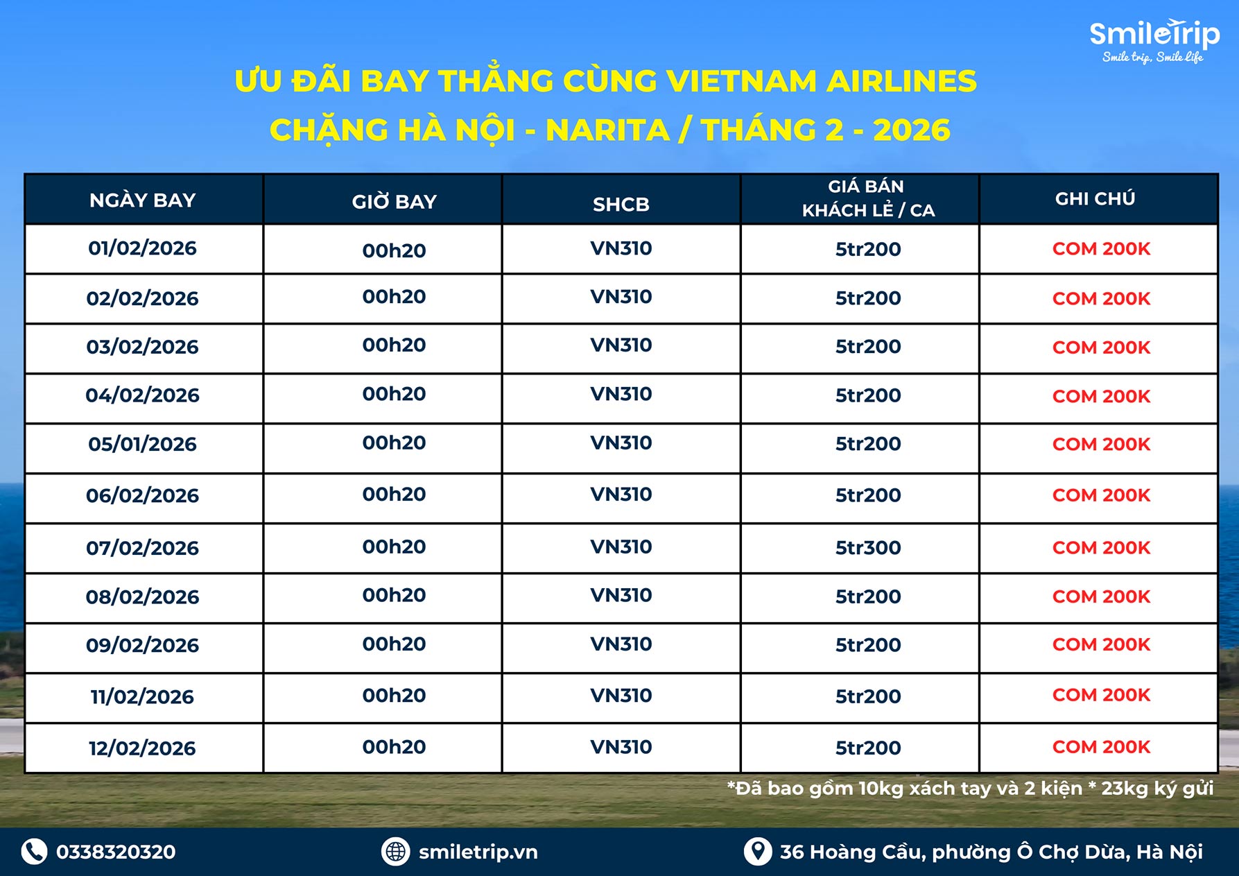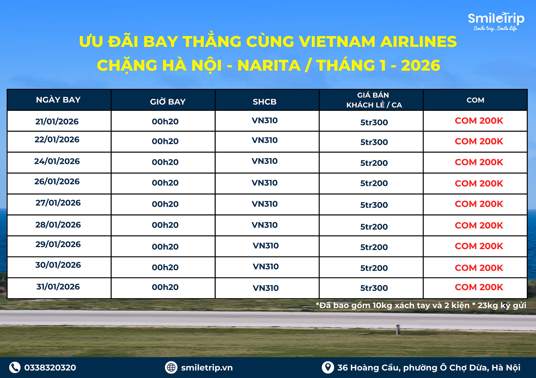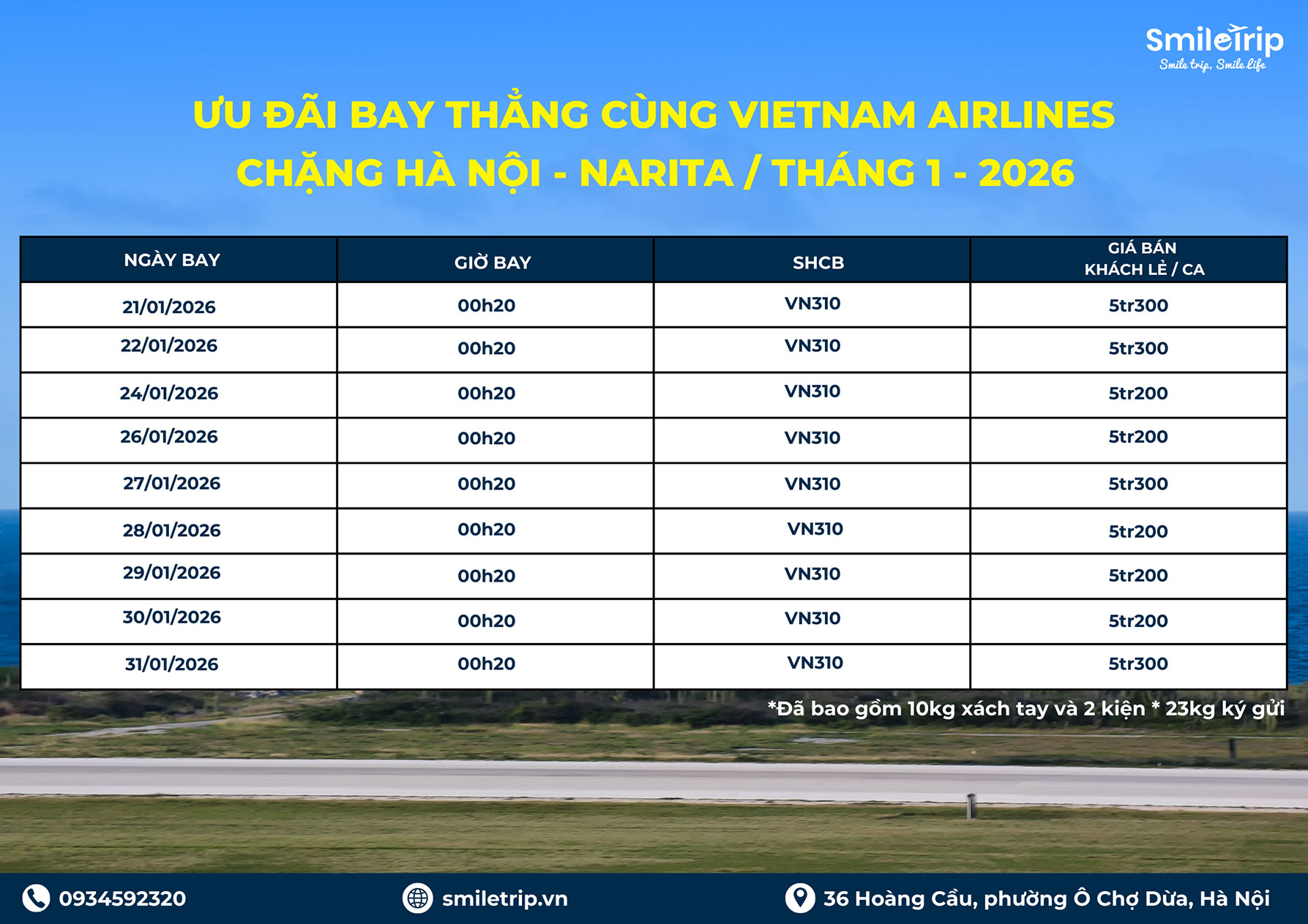 SmileTrip Thứ Ba, 20 Tháng Giêng 2026