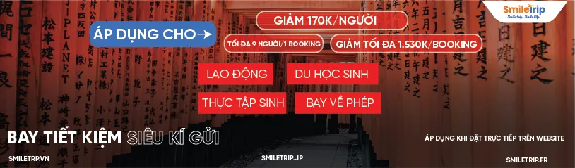 Bay Tiết Kiệm – Siêu Kí Gửi là chương trình ưu đãi dành cho khách hàng đặt vé máy bay quốc tế từ Việt Nam đi Nhật Bản thông qua hệ thống website của SmileTrip.