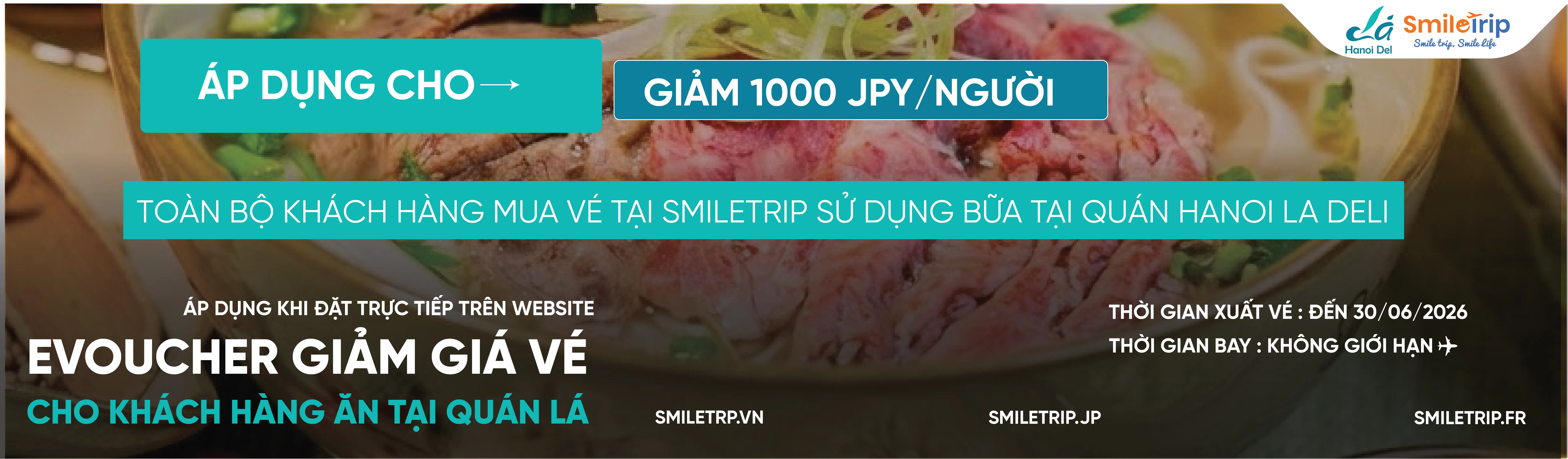 Ngoài e-voucher từ Lá Hanoi Deli, SmileTrip thường xuyên triển khai các chương trình khuyến mãi dành riêng cho từng thị trường.